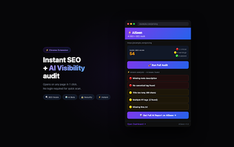AISEEN är ett kraftfullt tillägg för Chrome som erbjuder en omfattande analys av SEO, geolokalisering och säkerhet. Med en enkel klick kan användare få en översikt över sin webbplats synlighet och identifiera eventuella problem som kan påverka deras ranking. AISEEN ger dessutom kopieringsklara lösningar som gör det lättare att åtgärda dessa problem. Med hjälp av AI-teknologi kan användare maximera sin närvaro online och öka sin trafik.